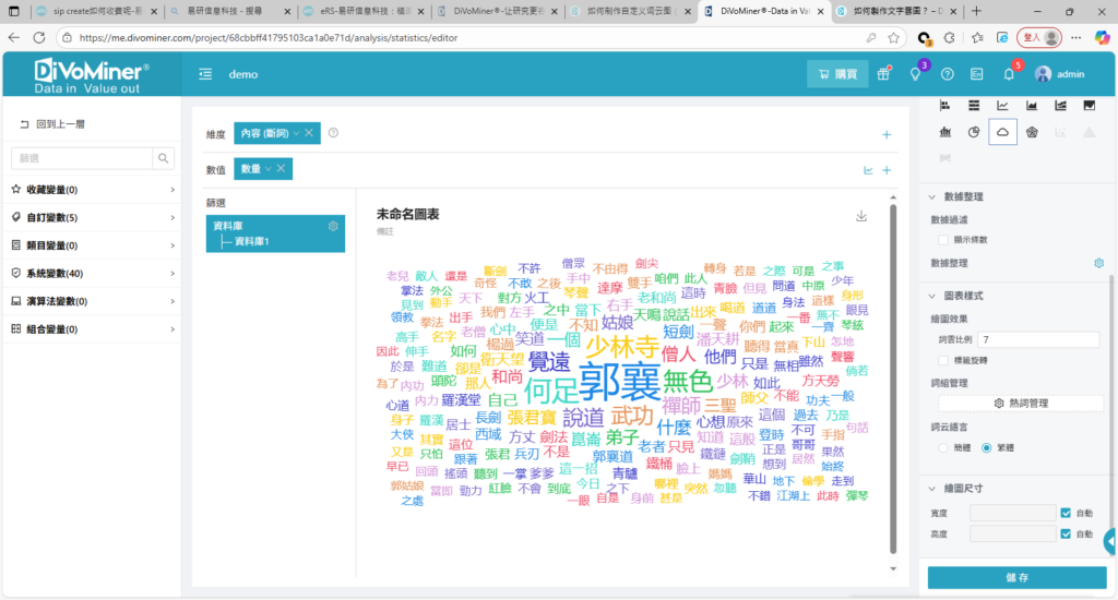 編輯好熱詞後,點選「確定」,回到圖表編輯界面,點選「儲存」,將詞雲圖儲存至特定檔案夾即可。