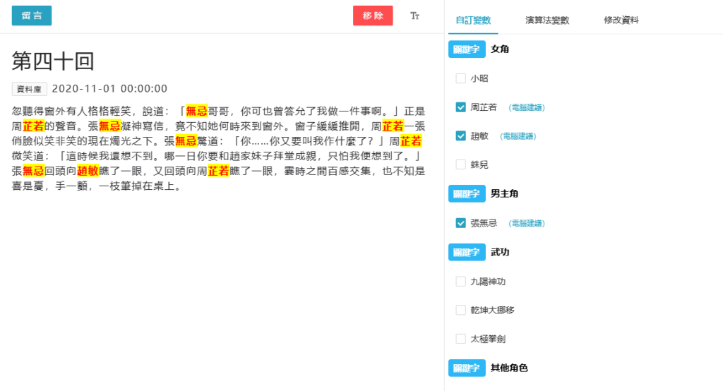 提示:不論是電腦編碼,還是人工編碼中的預選,依據都是由用戶自設的類目中選項關鍵字決定的,因此,編碼資料品質的高低,依然是取決於研究者的研究能力和思考成果,在一個研究裡,有可能需要研究者反復調整設定和矯正結果,才能達到一個較佳的編碼結果。