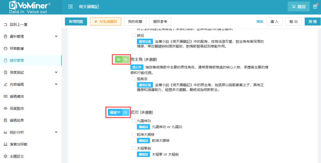 關鍵字類目和AI類目如何互相轉換? Created 8 10 月, 2025 Author admin Category 常見問題 在「類目管理」頁面中,有兩種方式可以將關鍵字類目和AI類目互相轉換。 方法1:點擊類目標題左側的的“雙向箭頭”,即可互相切換類目類型。 方法2:選中某個類目,進入編輯狀態,可以選擇是否勾選「使用AI編碼」選項。如果勾選該選項,則該類目即為AI類目,如果不勾選,則為關鍵字類目。 Was this article helpful? Yes No